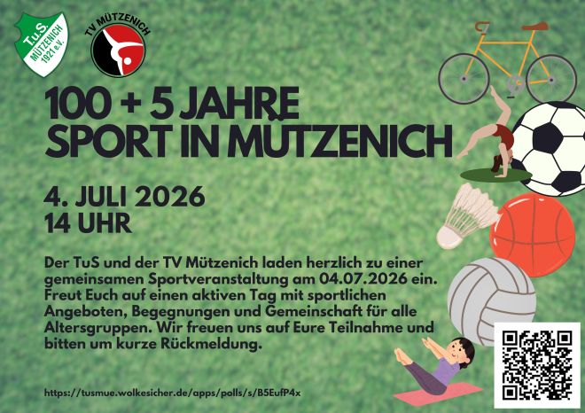 Gemeinsam mit dem TuS Mützenich veranstalten wir einen Tag voller Sport, Spiel und Spaß - seid dabei !!!